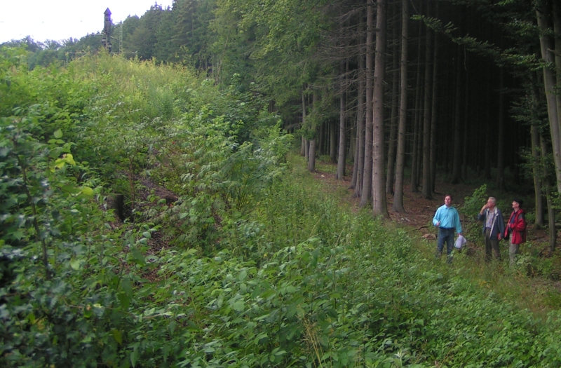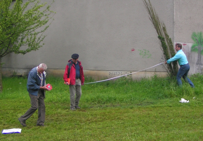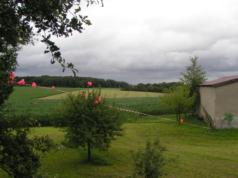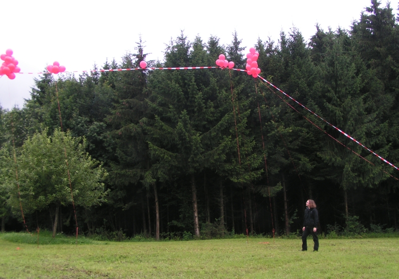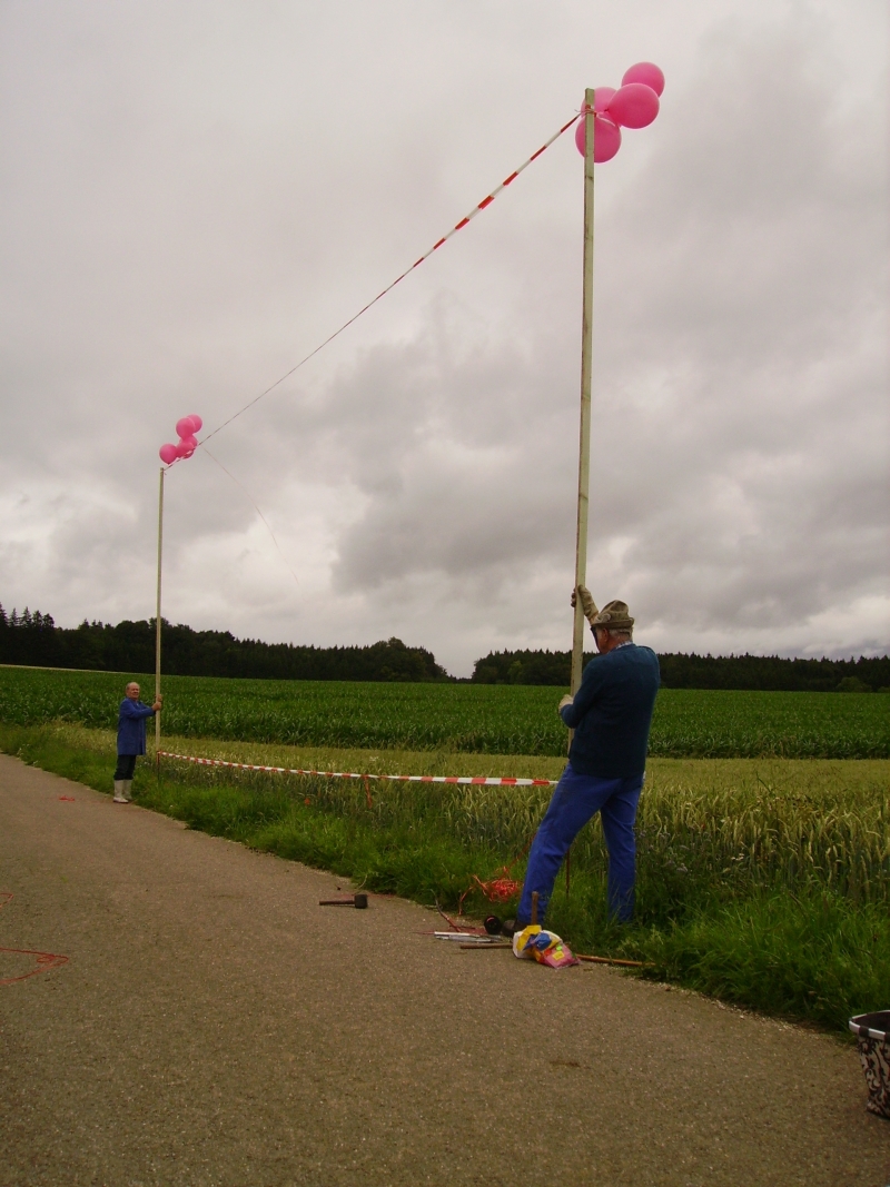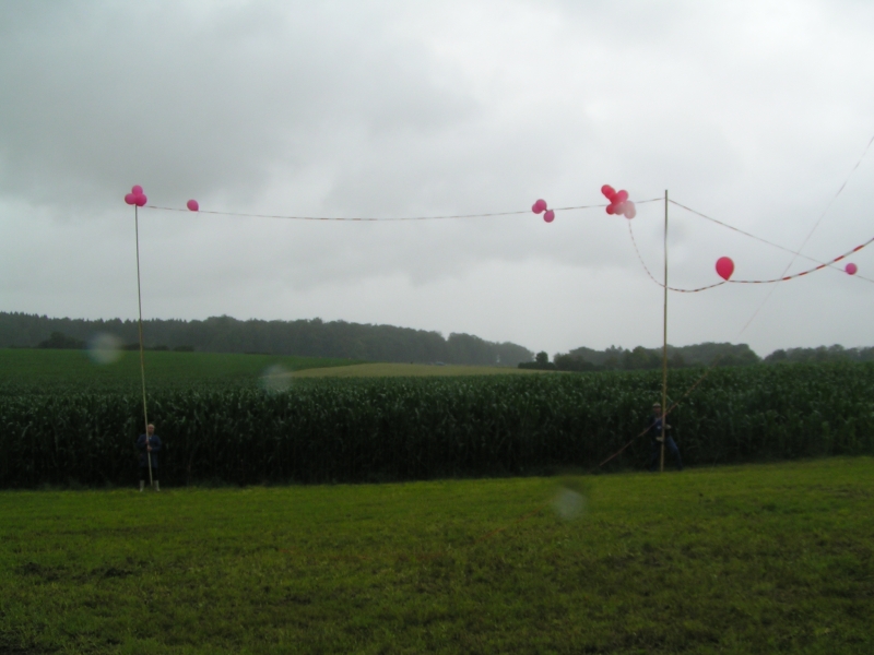 Die geplante Trasse wird mit Luftballons und Absperrband kenntlich gemacht: